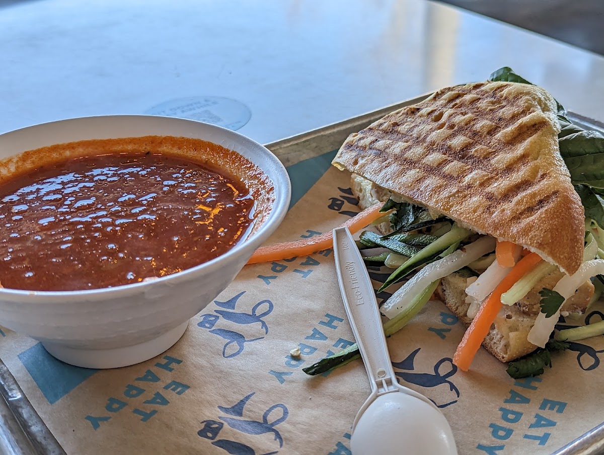 When it comes to food, Mendocino Farms delivers a menu full of flavorful options that stand out for freshness and creative combinations. Vegan and vegetarian choices like the Impossible Taco Salad and Vegan Banh Mi cater well to plant-forward eaters, while meat options such as the Flat Top Smoked Brisket Club and Grilled Turkey & Cheddar Sandwich offer satisfying, hearty alternatives. Seasonal items and chef specials rotate, adding a bit of local and timely flair, like the Spicy Calabrian Turkey Focaccia or the Golden State Cobb. Soups like the Hatch Chile Corn and Tomato Soup offer comforting pairings, particularly during cooler months, often enjoyed alongside a “Not so Fried Chicken” sandwich or a Caprese sandwich for a balanced meal.